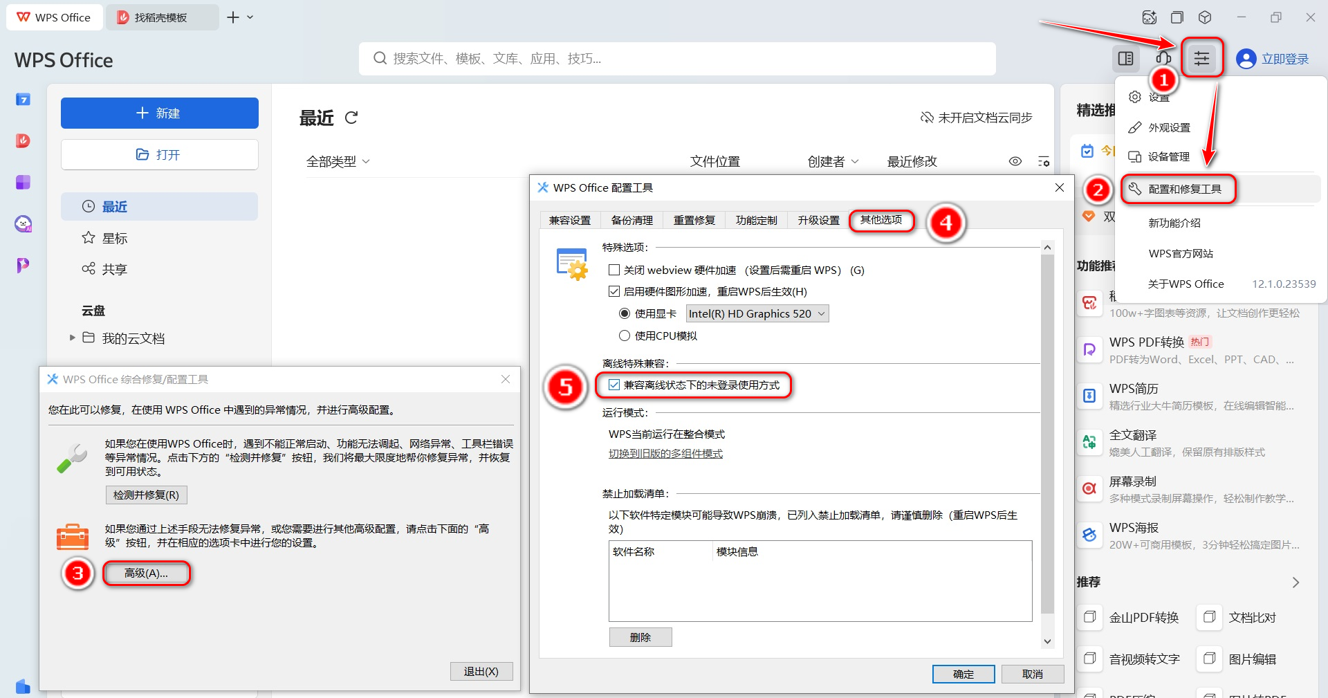 部分朋友可能在一台电脑上安装WPS后出现强制登录账号使用的问题,即不登陆账号则所有功能显示灰色无法点击使用。