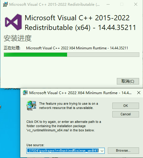 提示的路径是:C:\ProgramData\Package Cache\{F1B0FB3A-E0EA-47A6-9383-3650655403B0}v14.16.27024\packages\vcRuntimeMinimum_amd64\
